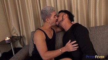At Daniel's place, a scented candle and kiss sets the mood for more of a hookup than a workout. As they rub their hot horny bodies together on the sofa, their shirts and shorts peel down in a flash. Kenji nibbles at Daniel's chest and begins slurping down his fresh hot meat while he beats his own tube steak. Then Kenji chows down on Daniel's musky butt. Daniel returns the favor and swallows Kenji's cock to the stubbly root.