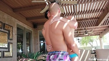 Eric goes for a dip in the pool to relax and take his mind off the sexy Latino he met online. Spencer, the mysterious absent partner, shows up and hands Eric a towel suggesting they get to know each other a little better. Learning about Spencer's history, Eric soon realizes how much Spencer and Jessie are alike, hot and in control. Eric couldn't stop thinking about having Spencer's hot body fucking him. Spencer regrets not being there for Eric's interview process and suggests they do a hands-on interview. Spencer really likes to dig down deep and know his partners. Spencer takes off his pants releasing his hard cock and shows Eric how in-depth and hands-on his interviews are. Check out the hot in-depth interview poolside in "Fuckin Lawn Chair"