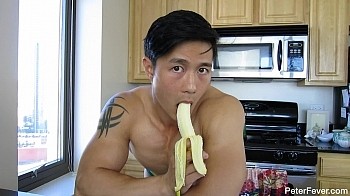 When I wake up, I start my day with a nice cup of tea and a banana. But this morning was a little different than usual. I didn't pull out my normal tea cup from the cabinet and realized that when I started drinking from Bruce's cup. He loved my tea time ritual each morning; well we enjoyed it together. And this banana reminds me of the first morning we woke up together, he was so fucking hard I couldn't help but blow him first thing before we even got out of bed. Just thinking of him is making me hard and really horny. Not only is the tea hot in this video but so am I. Enjoy "Tea Time," but I'm warning you, get a napkin before watching, you will need it for the mess you will make.