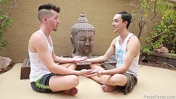 Shawn looked frustrated for someone meditating next to the Buddha statue. I needed to give him a more aggressive solution. I grabbed the back of his neck, pulled him in for a kiss, and dragged him back to the bedroom. We stripped naked and I rubbed his shoulders and pinched his nipples while kissing his neck. His frustration disappeared and all that was left was a sex craved man. Raphael Marino helps Shawn Andrews release his frustrations in the Novella Series Season 5 Episode 4 "Remember When, You Tried Meditation?"