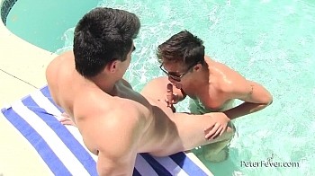 Racing back to town and a friend's vacant pool, Axel cools Jason off in the sparkling water before he rams his dick into the young stud's hungry ass. Jason braces with his hands against a towel on the sun-baked deck.