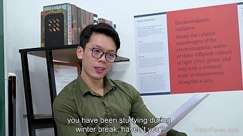 There are so many great things to be said about this scene. The direction is outstanding. The camera work is great too! There is one shot where you see Yowei sitting on the desk being penetrated and it is just so unbelievable!! Wish that it had gone on longer. Thank you. I watched it over and over and still get off on all of it. I would love to see these two paired up again. Perhaps a scene where Hen doesn't do so well on another exam. Love it also when Hen says to Yowei, "Mr. Yowei, your ass feels so good!" Wonderful!!!!!