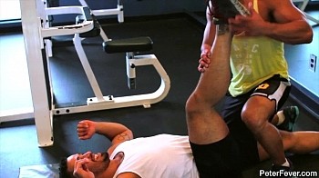 So Peter and I headed to the gym and saw all these hot buff guys working out. I could smell the musk radiating from them, it was intoxicating. On the way to the free weights we noticed Trey Turner doing crunches. I've never noticed how ripped his body looked. He suggested we have public sex in the locker room; the idea was tempting but there were too many people and we could get caught. We started working out and he spotted me on the bench press. As I was pumping iron, I could see his dick growing bigger and bigger. He must have loved seeing me flex my bulging muscles. The sexual tension was building and I grabbed his hard cock through his shorts. I felt naughty doing this in front of everyone. Fuck, I couldn't hold it in anymore; I wanted to stretch his ass out next! We have to go to the locker room now! I just hope we don't get caught. Watch Trey Turner and Diego Vena in this week's episode, "Pump You Up."