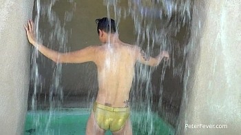 Nolan first thought about being gay when his crushes were on other boys. His first experience was a date with a school friend where his father drove him to the buddy's house. Nolan loves skin care and taking care of his appearance, and it shows. Standing in the cool waterfall of a desert gay resort, he runs his hands through his thick black hair and reaches down to his big cock. This is a guy that enjoys his body and loves having us watch him getting off. He dries off on a lounge in the warm sand and begins stroking. His legs up and apart, we catch a glimpse of his firm tan butt. He gives us a seductive glance and his nuts pull up tight into firing position. He licks his lip and gets ready to blow. A thick spurt of creamy jizz rockets out onto his tight little waist. Nolan moans with satisfaction and beams as he tastes his sticky fingers.