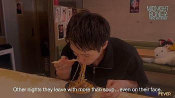 In Zen's small kitchen, Zen asks Taki to prepare some ramen, but Taki points to something firmer that caught his attention. "I think I need to eat somethimg more than ramen," he confesses, and the guys strip out of their shirts. Taki offers to record their "edgy" makeout video.